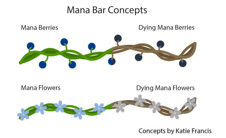 I’m no artist but I am able to use photoshop to create a few basic concepts. I wanted to step away from basic health and mana bars so I took the time to create some concepts. I recently learnt how to create new shaped progress bars for my final year project and wanted to use this in the UI for Magus Florum.